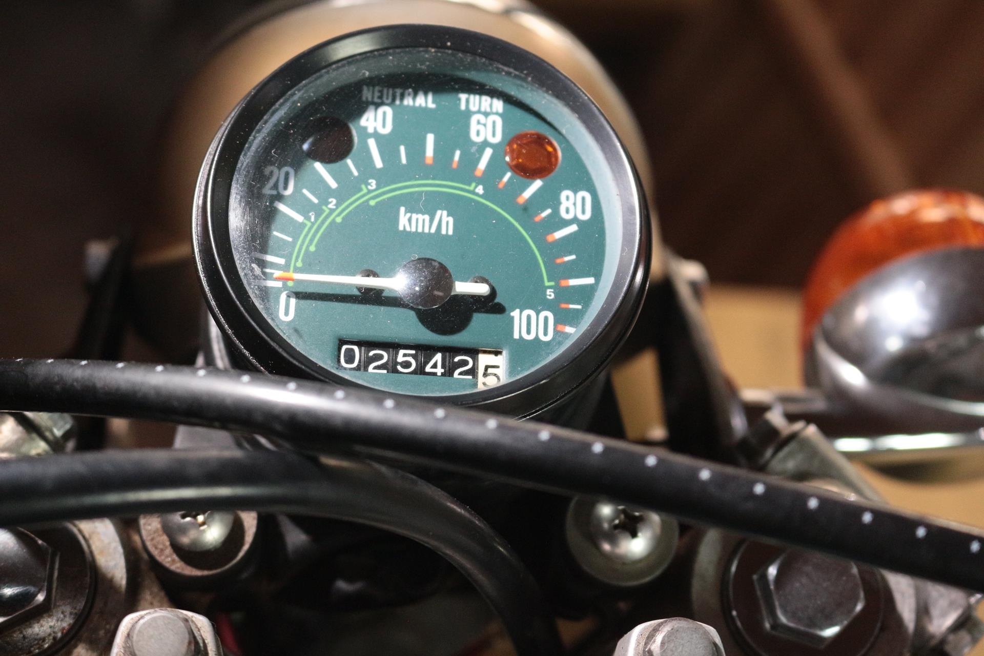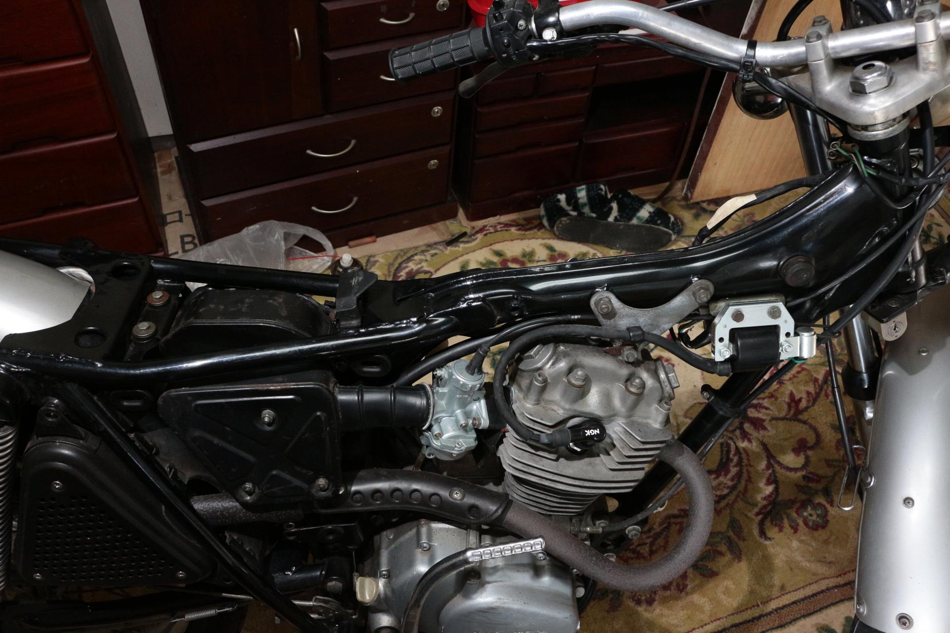 20年近く前に,別荘のガレージにずっと保管されていたファーストオーナーの方から,走行1,200kmほどの車体を引き継ぎました。車体の傷跡などからトライアル走行はしていなかったようで,メータの走行距離は実走値だと思います。その後再登録し,10年ほどの間は,月に1・2度,近所の散策で走り,現在2,500kmほどです。路面が乾いている日に,ほぼ舗装路しか走っていません。その後,2019年に廃車し,自宅の空き部屋で保管してありました。