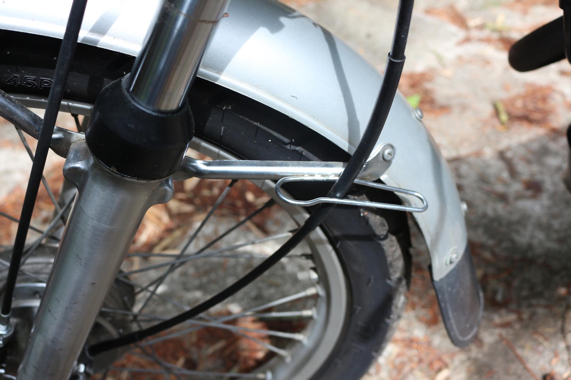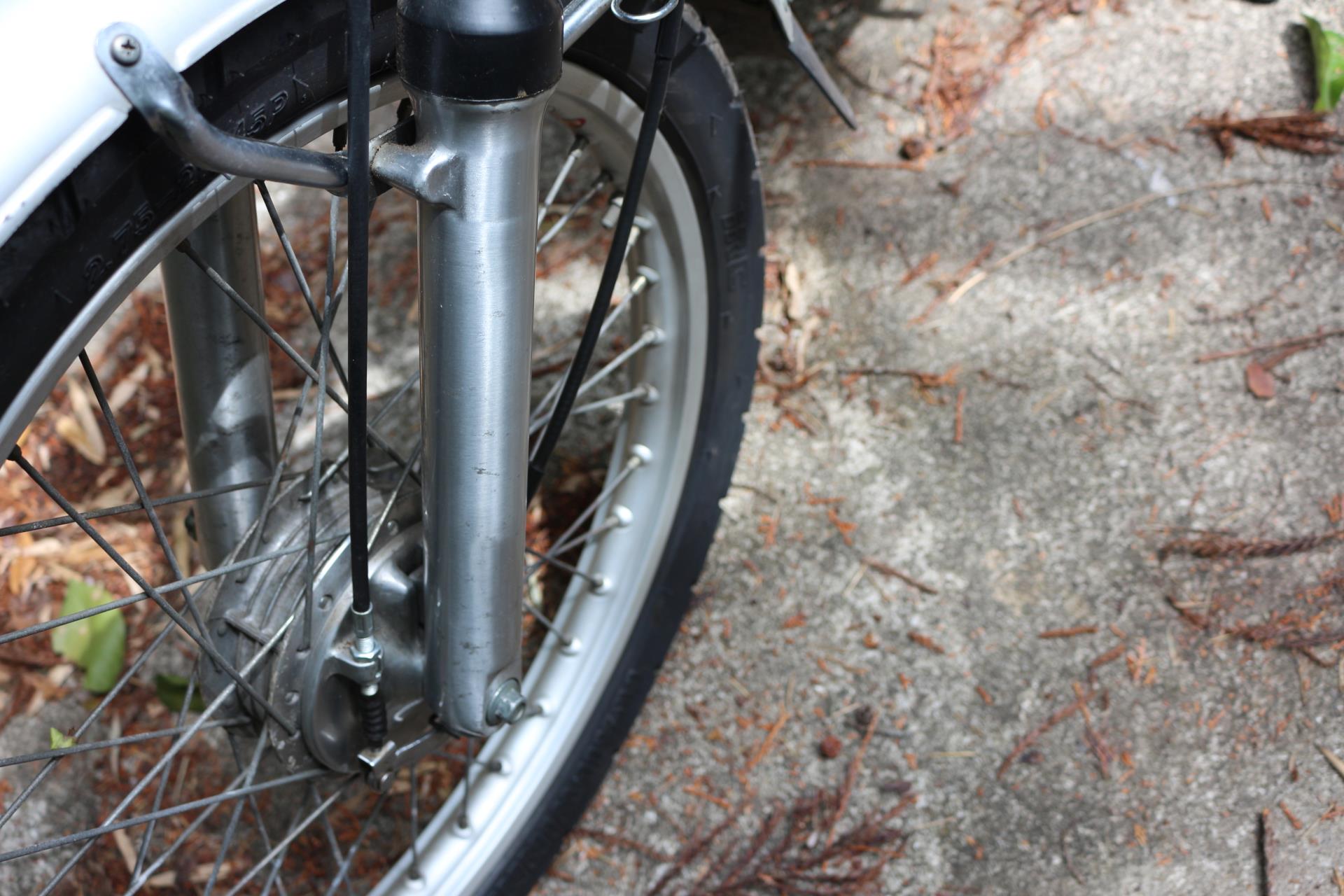 ・フロントフォークのオイル漏れはありません。写真では横筋が見えますが,錆防止に塗ってあるグリスです
