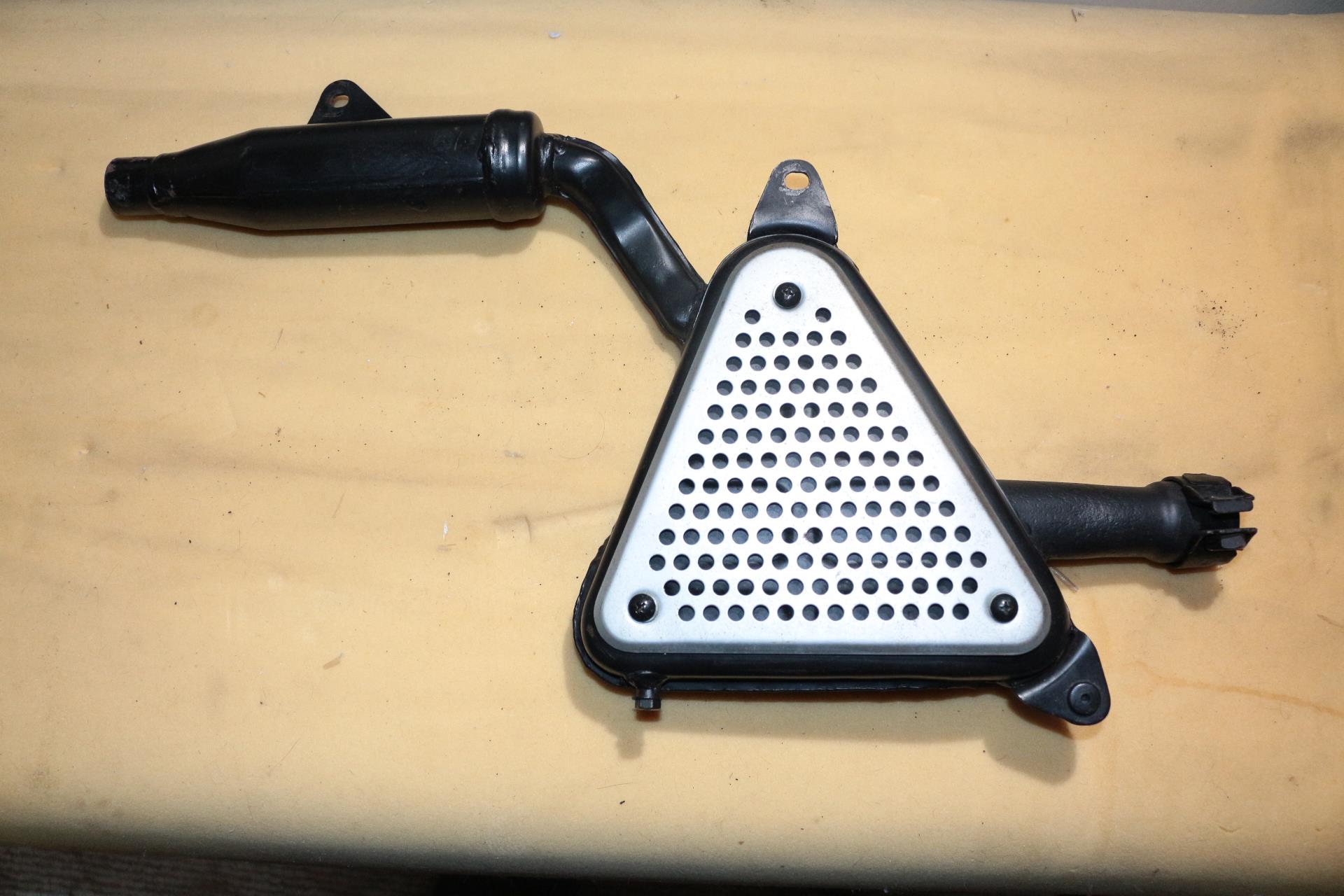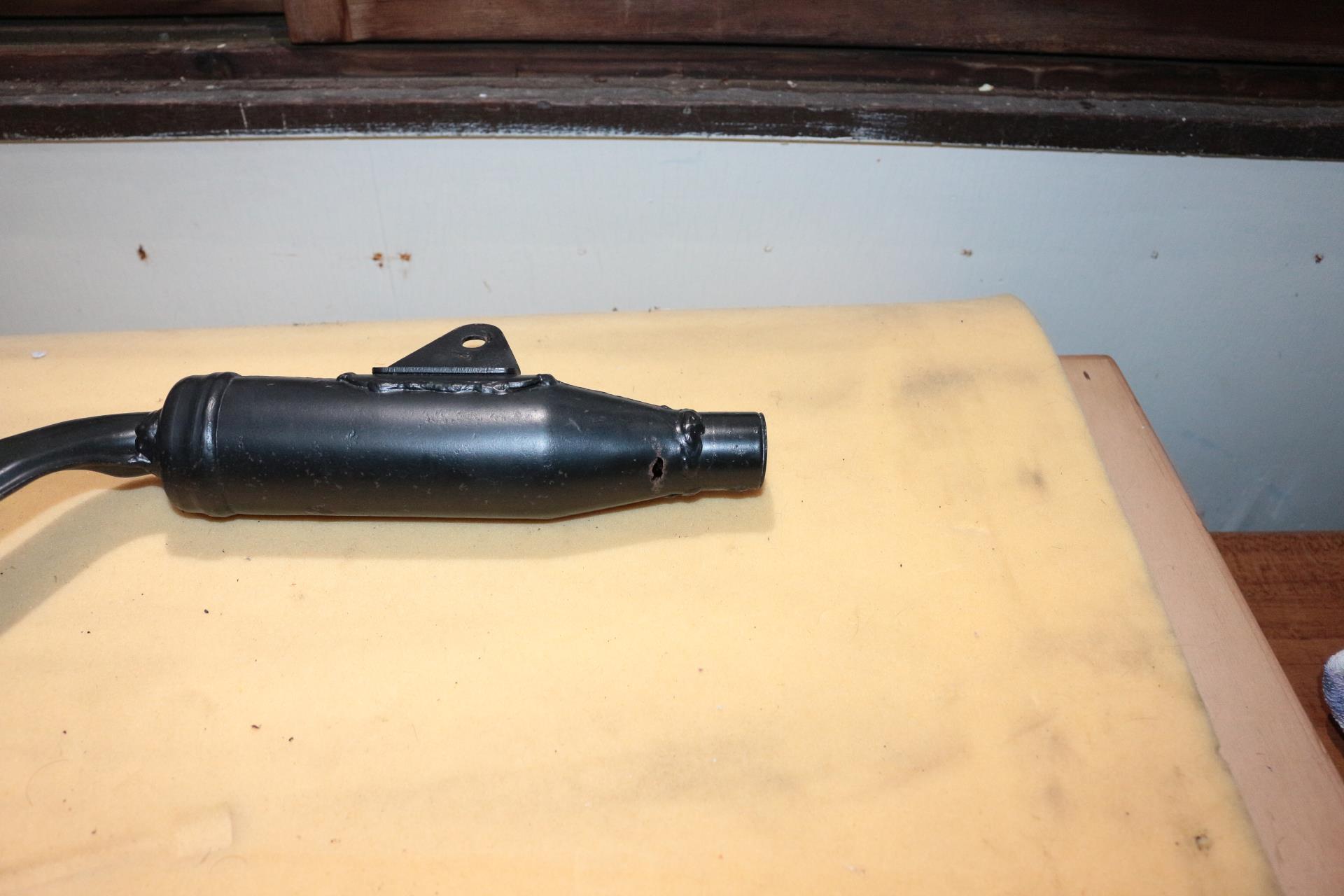 ・元のスパークアレスタ付きマフラ:サブマフラーの車輪面側に3×7mm程の孔が1個だけあります。塗装は綺