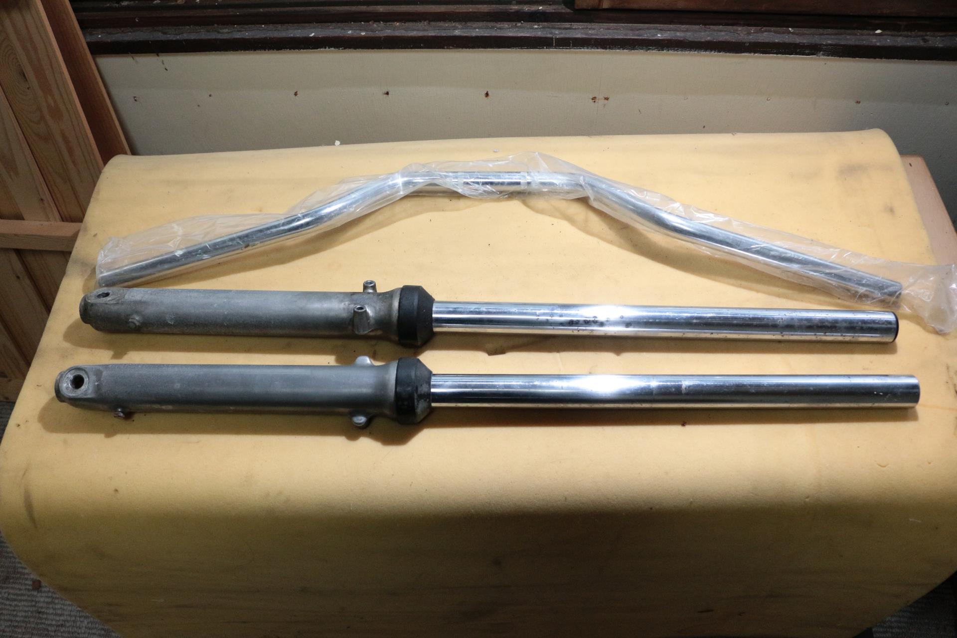 ・元のFフォーク:純正ですが,メッキ部にゴマ錆があります。ボトムのアルマイトは落ちています。クリアで