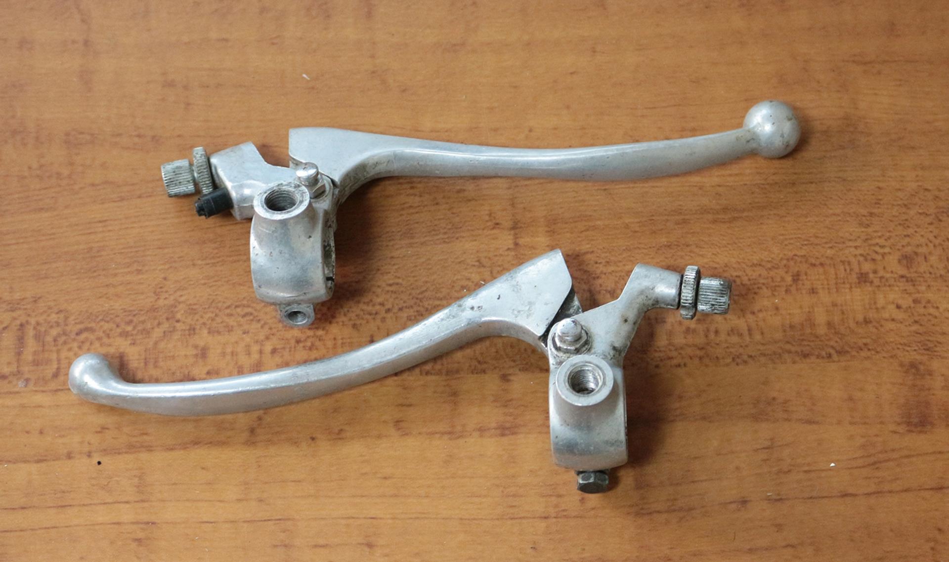・元のブレーキ・クラッチレバーとホルダ:(折れ・曲がりなし)左右で先端のボール状の部分の大きさが違う