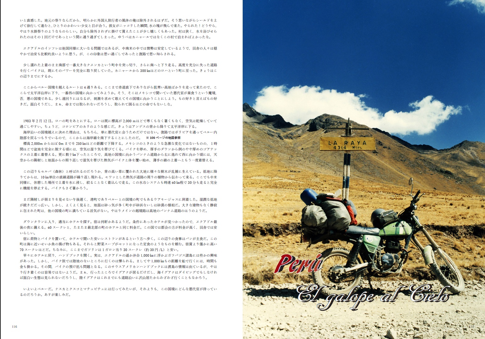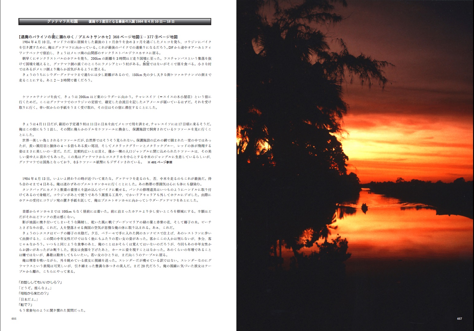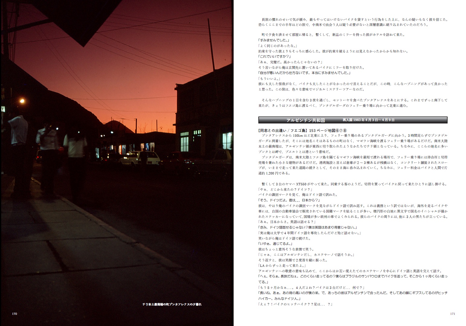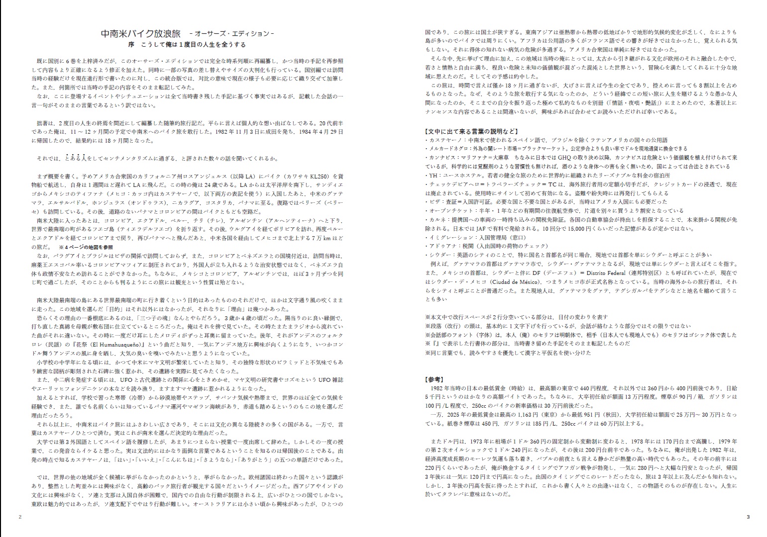 1982年から1984年に掛けて中南米をバイクで放浪した時の手記を元に,時系列順に編纂した随筆(写真エッセイ)です。先発で上梓済みの国別編6巻に若干の新しい写真を追加し,既出の写真も一部を大判に変更しました。また,当時の手記を再精査し,より事実に沿った内容へと修正し,全体の文章も再度推敲し2割ほどを書き換えました。