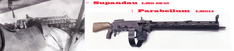 この頃の戦闘機や偵察機に装備されていた火器と言えば,機関銃が1~3丁程度のものだった。ドイツでは,7.92mmのシュパンダウ機銃(Spandau LMG 08/15)や同じく7.92mmのパラベラム機銃(Parabellum LMG14/17)が装備されていた。ジーメンス社やフォッカー社ではバルカン砲のような多砲身の機銃も試作されていたようだ。一方,イギリス機には7.7mmのルイス機銃(Lewis)や同口径のビッカース機銃(Vickers)が装備されていた。フランスにはホチキス機銃があった。